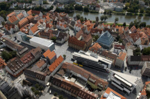 Kaum eine Innenstadt hat sich in den letzten drei Jahrzehnten derart gewandelt wie die Ulms. Wo einst der Autoverkehr das Herz der nach dem Krieg wieder aufgebauten Innenstadt entzweibrach, sind über die Jahre nicht nur moderne architektonische Landmarken entstanden, sondern durch eine städtebauliche Neuordnung auch attraktive öffentliche Stadträume. Die Symbiose aus alter und neuer Architektur gelingt dabei beispielhaft und gilt bisweilen als bundesweites Vorbild des Städtebaus. Auch zukünftig legt Ulm den Fokus auf innerstädtische Sanierungsmaßnahmen, um den sich wandelnden Anforderungen an eine vitale Mitte gerecht zu werden.