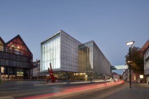 Das Steildach prägt als Urform des Daches traditionell die Architektur vieler Städte. Doch nicht jeder Stadt gelingt es derart erfolgreich wie Ulm, diese Form in einer modernen Architektursprache zukunftsweisend weiterzuentwickeln und dennoch die Historie des Ortes zu wahren. Mit seinem Entwurf für einen Erweiterungsbau für das Theater Ulm liefert der Architekt Max Dudler ein weiteres gelunges Beispiel dafür, wie moderne Architektur an Geschichte und Tradition anknüpfen kann. Auch er adaptiert dabei den Giebel als Dachform.
