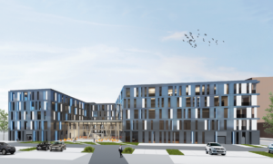 Östlich der Innenstadt entsteht derzeit ein wegweisender Hybrid für die Bürowelt von morgen. Das von einem Joint Venture entwickelte BERLINERHAUS wird nach seiner Fertigstellung Mitte 2022 zu einer neu- en Landmarke in Wolfsburg und bietet zukunftsfähige Office Strukturen sowie ein Hotel für Geschäftsreisende und Tourist*innen.