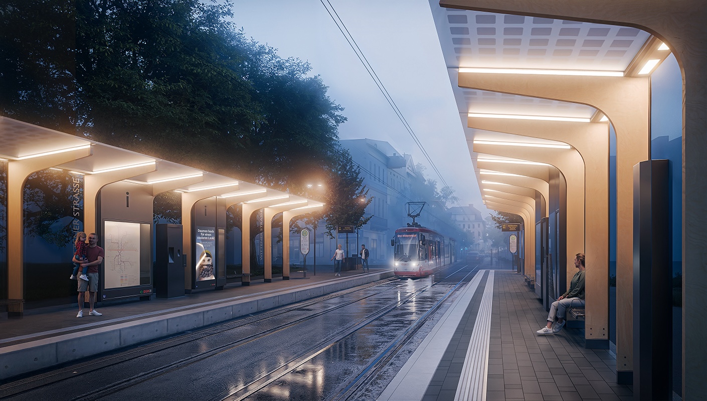 Modellhaltestellen Dortmund // Rendering: Gruber + Popp / studiorosarot