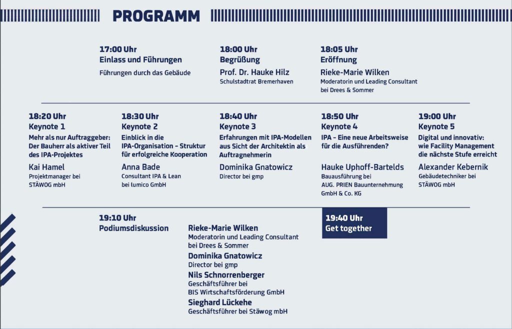 - Wie verändert sich Zusammenarbeit, wenn alle Beteiligten – von Planung und Ausführung bis zur Nutzung – von Beginn an gemeinsam am Tisch sitzen?